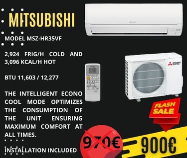 When considering the Mitsubishi Electric MSZ-HR35VF, many customers look for related terms such as air conditioning service near me and HVAC near me. Our services cater to various locations, including air conditioning Alicante and air conditioning Valencia.